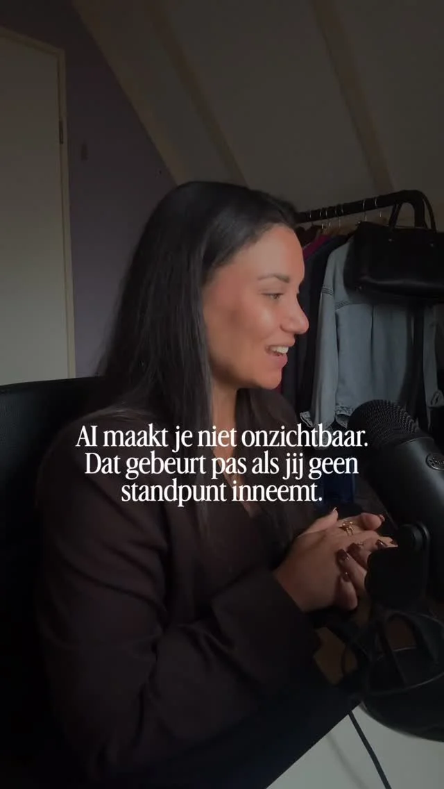 Ik help vrouwelijke ondernemers met een steady business hun stem, visie en leiderschap zichtbaar maken, zodat hun bedrijf niet langer leunt op hun energie, maar gedragen wordt door een helder verhaal dat met behulp van AI consistent en schaalbaar wordt uitgedragen.